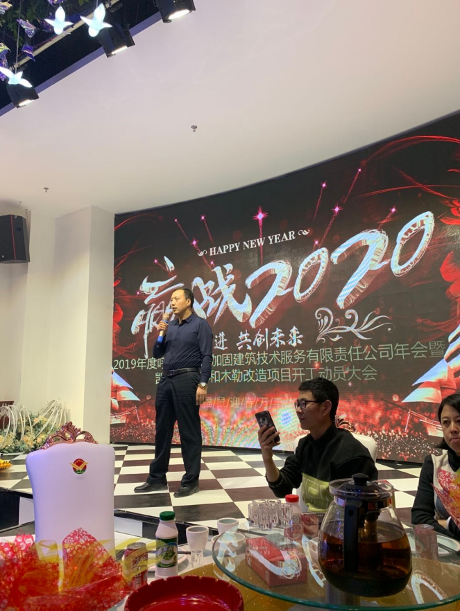 晚上舉辦了呼和浩特市加固建筑技術服務有限責任公司2020年年會暨凱德廣場·諾和木勒改造項目開工動員大會。
